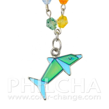 Multi Color Change Jewelry Mood Necklace with Origami Dolphin Pendant